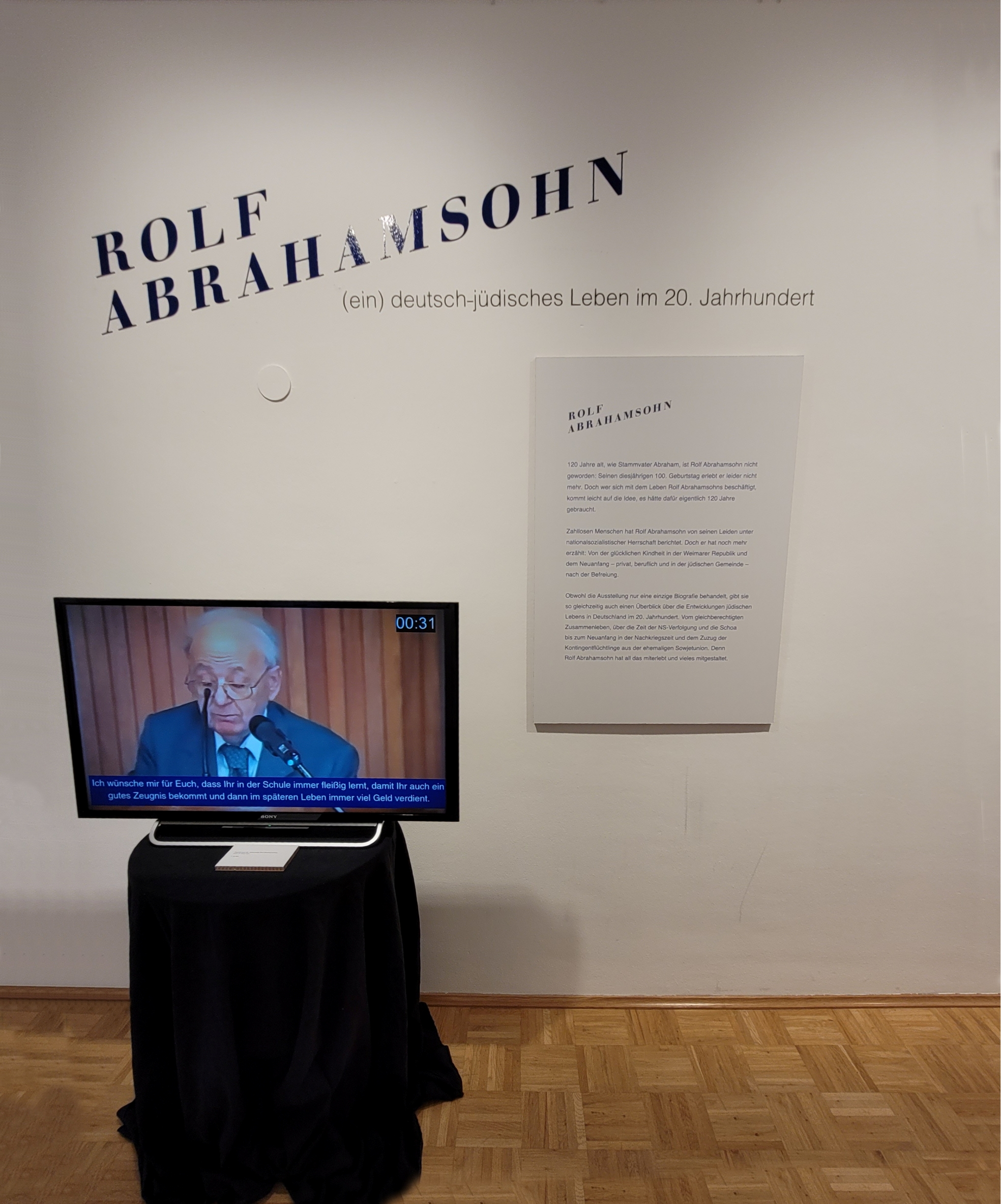 Am 8. März dieses Jahres wurde im Jüdischen Museum Westfalen in Dorsten die Ausstellung „Rolf Abrahamsohn – das Leben deutscher Juden im 20. Jahrhundert“ eröffnet. Die Eröffnung der Ausstellung hing mit dem 100. Geburtstag Herrn Abrahamsohns zusammen. Hier sind Ausschnitte aus seinen Interviews gesammelt worden, Fotos, Dokumente, persönliche Gegenstände. Auch wenn die Ausstellung nur dem Leben einer Person gewidmet ist, gibt sie doch einen Überblick über die wichtigsten Ereignisse im Leben der Juden in Deutschland im 20. Jahrhundert.